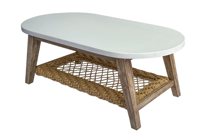 Lucienne Teak and Dove Wicker Round Coffee Table