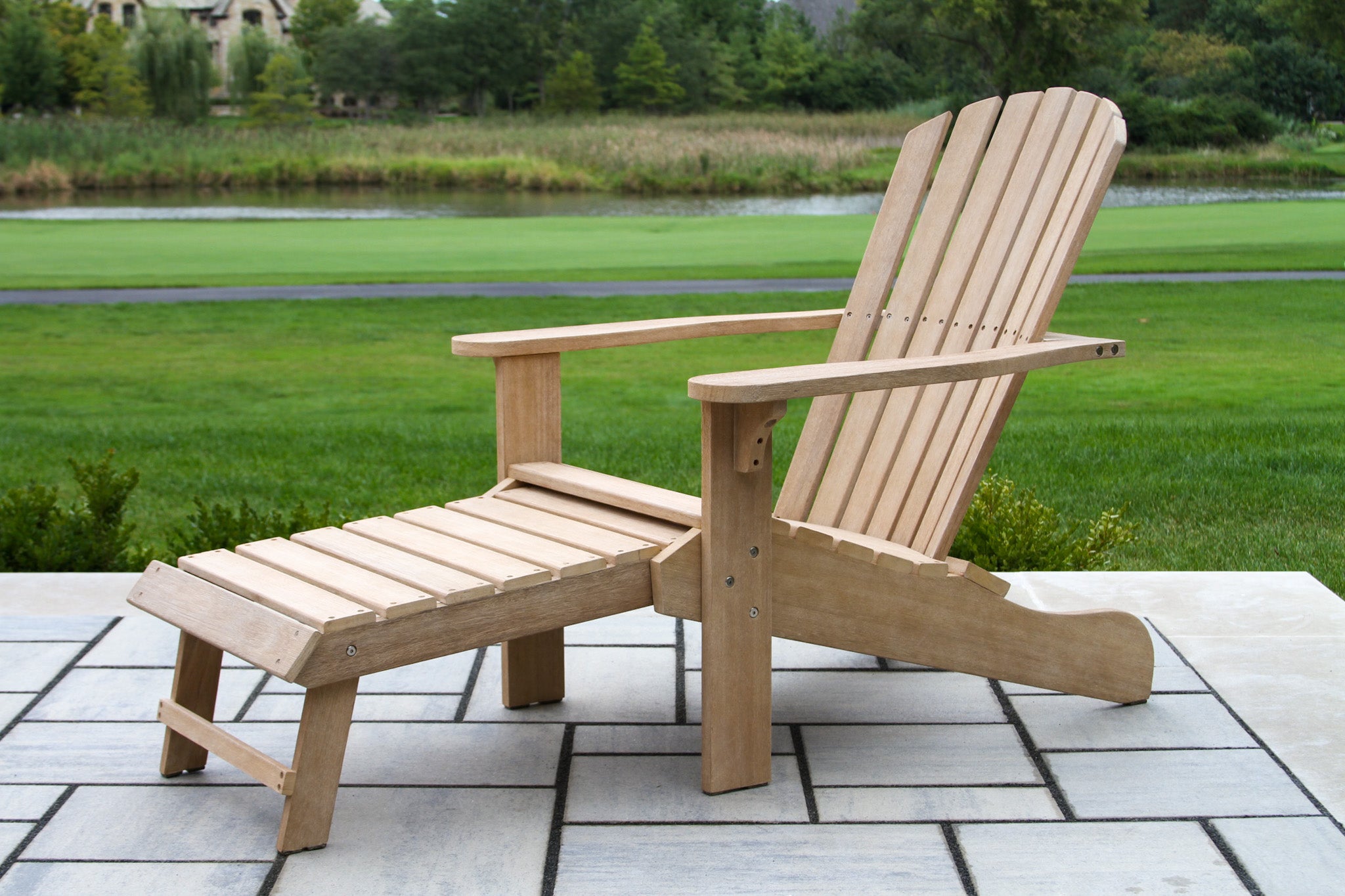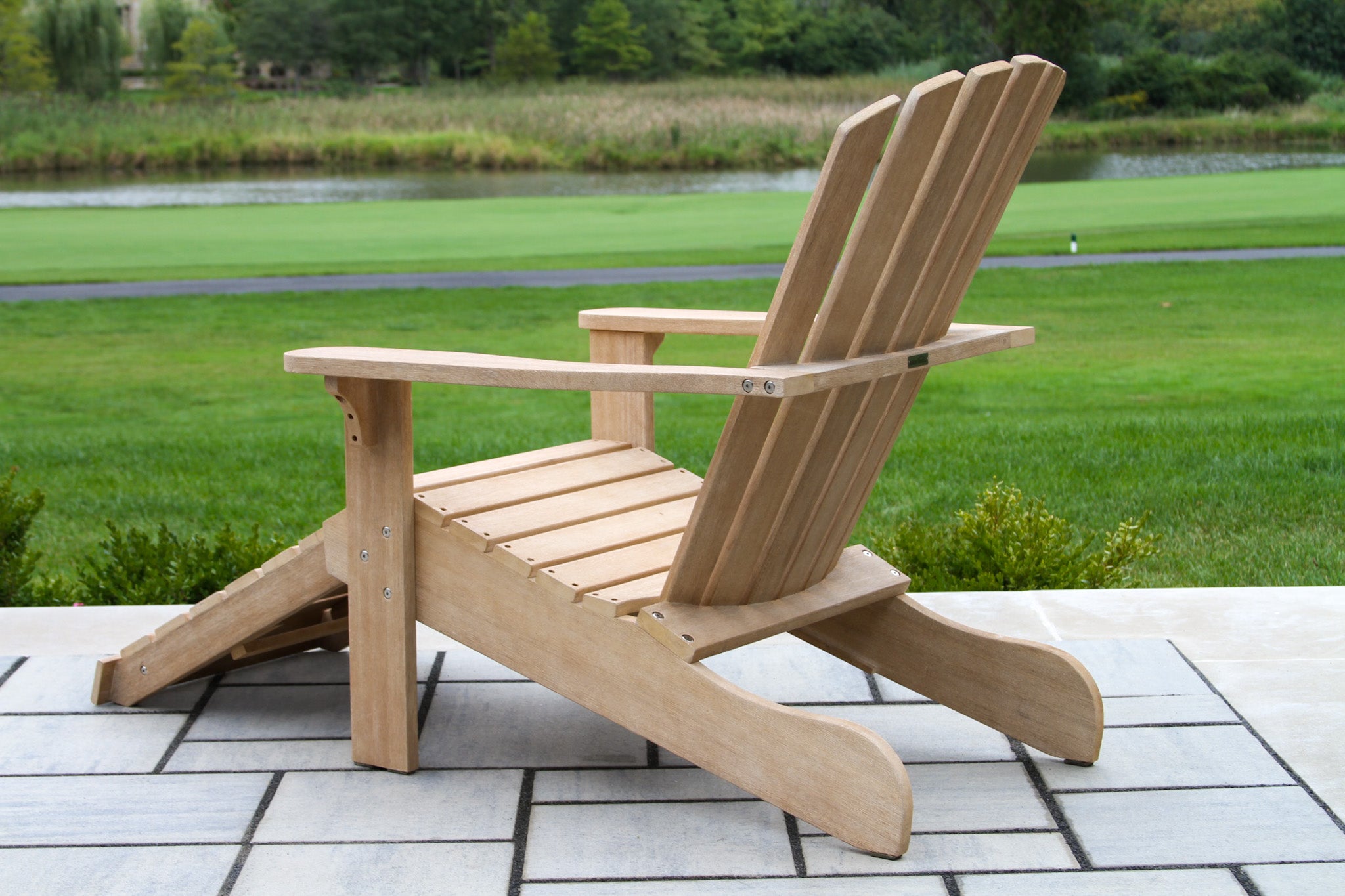 This adirondack chair combines classic comfort with functional design. Featuring a wide seat and a built-in sliding ottoman that extends or tucks away, it delivers versatile relaxation in any outdoor space. Finished in a hand-applied, UV-resistant Antique Wash, this durable eucalyptus chair offers timeless style built to endure the elements.