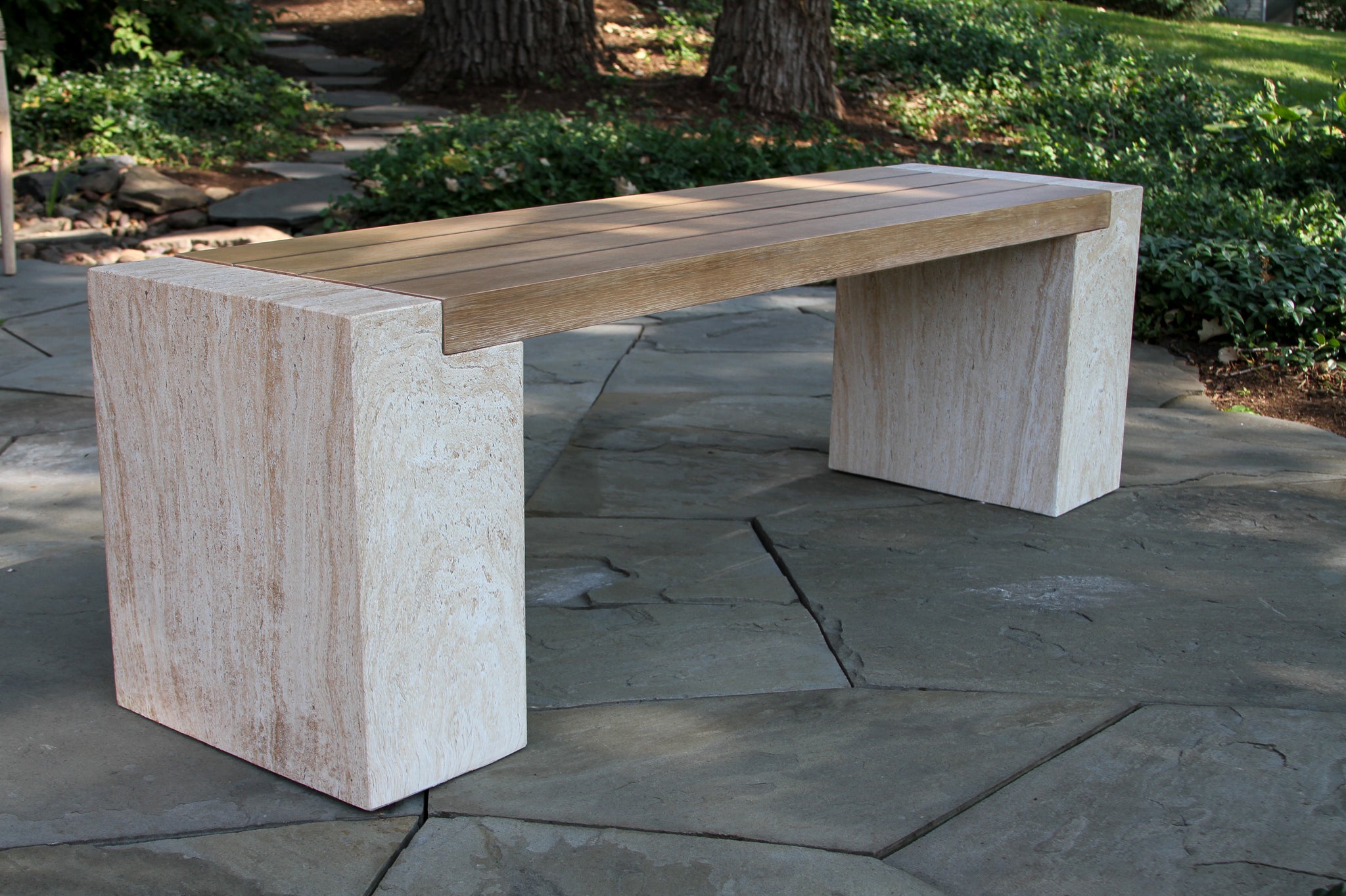 This bench combines natural warmth with lasting strength. Its antique-washed eucalyptus hardwood seat rests atop a composite base with the refined look of marble, creating a balanced design that’s both elegant and durable. Perfect as a standalone accent or paired with the matching Isabella Eucalyptus Marble Composite Dining Table, it brings timeless charm to any outdoor setting.