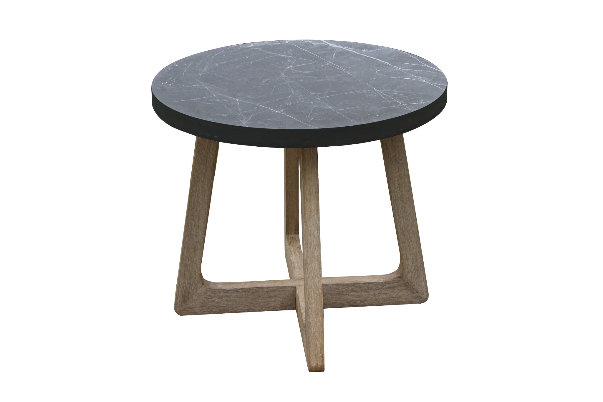 Supported by an antique-washed eucalyptus hardwood base finished with three layers of UV-protected stain, this table exudes warm, natural character. Whether used beside a lounge chair or as a chic accent for décor and drinks, it elevates any outdoor setting with timeless style.