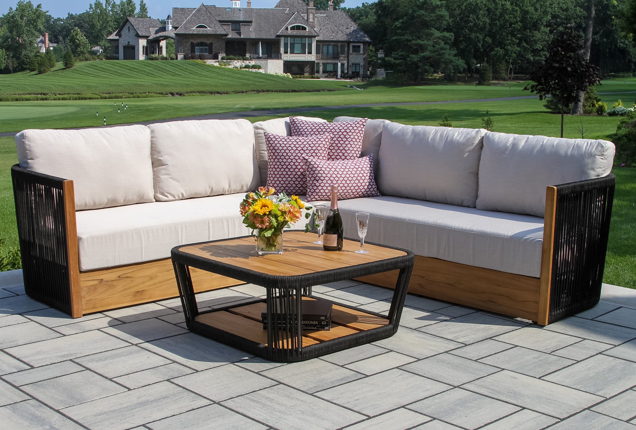 This sectional embodies resort-inspired comfort with contemporary sophistication. Handcrafted from FSC®-certified teak and wrapped in nautical-grade black rope, it offers enduring strength and texture. Deep cushions upholstered in Sunbrella® performance fabric resist fading, moisture, and wear - delivering both comfort and longevity. With its generous seating and fully assembled frame, this sectional instantly transforms outdoor lounging into an elegant escape.
