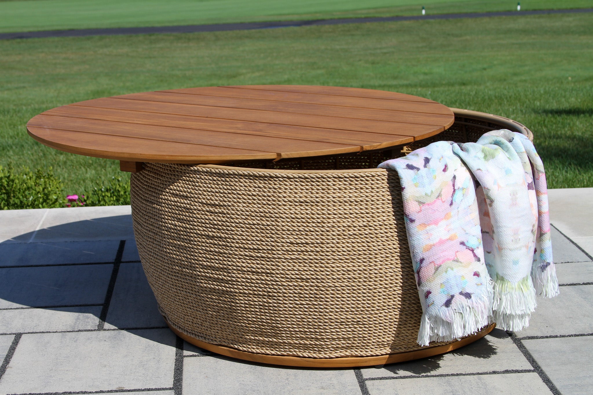 This coffee table showcases the collection’s signature mix of natural teak and handwoven cable wicker. Designed with a removable teak top for hidden storage, it blends functionality with artisanal texture - an elegant anchor for modern outdoor lounging.