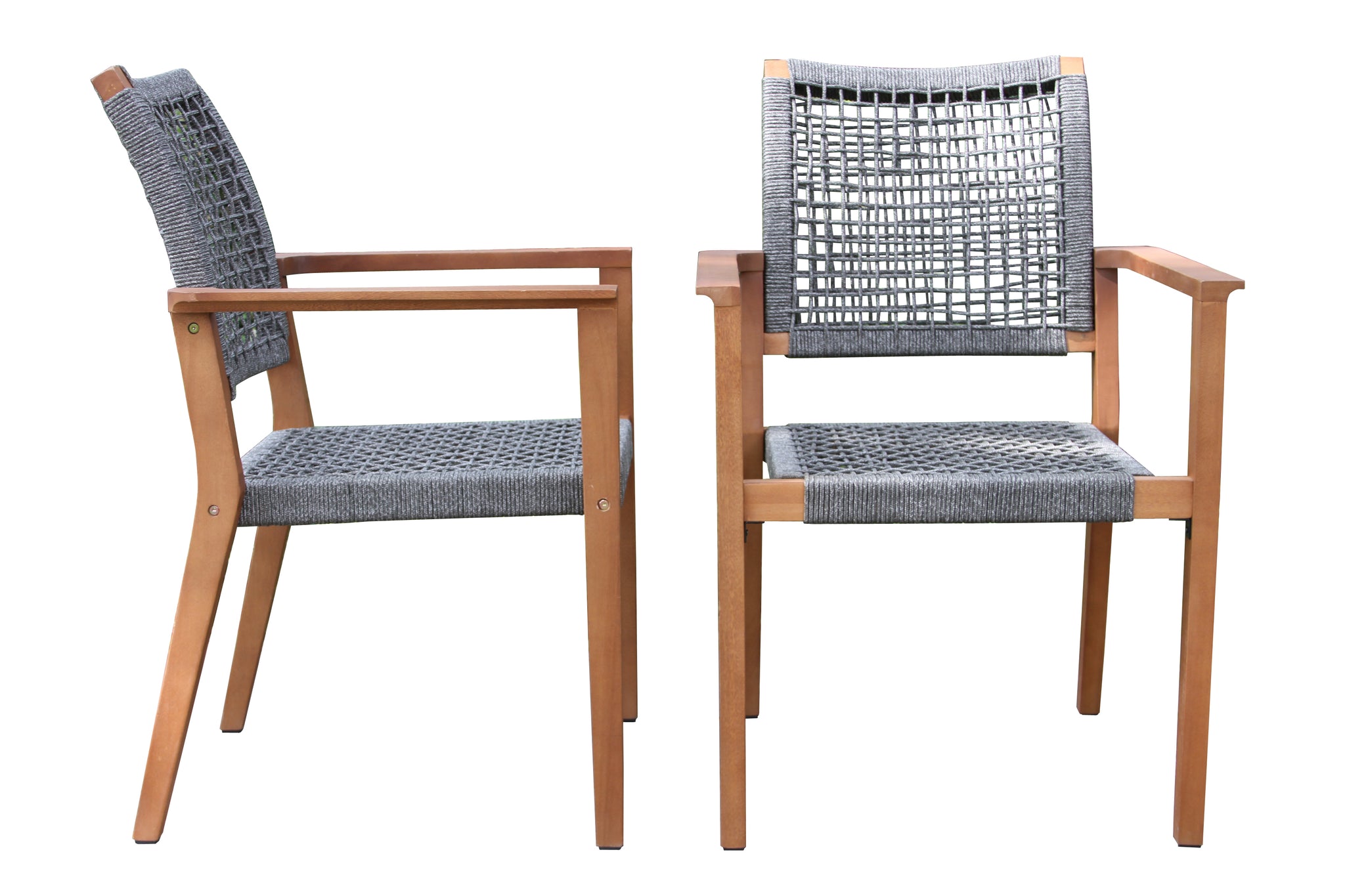 Bring coastal vibes inland with the 2pck Nautical Rope and Eucalyptus Stacking Chairs. These chairs are made with nautical grade rope for extra strength and stack for your convenience.