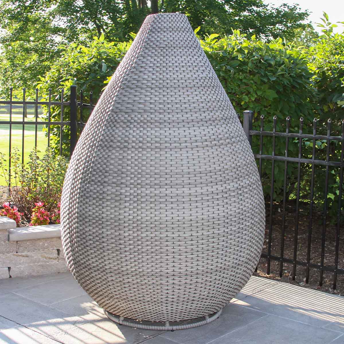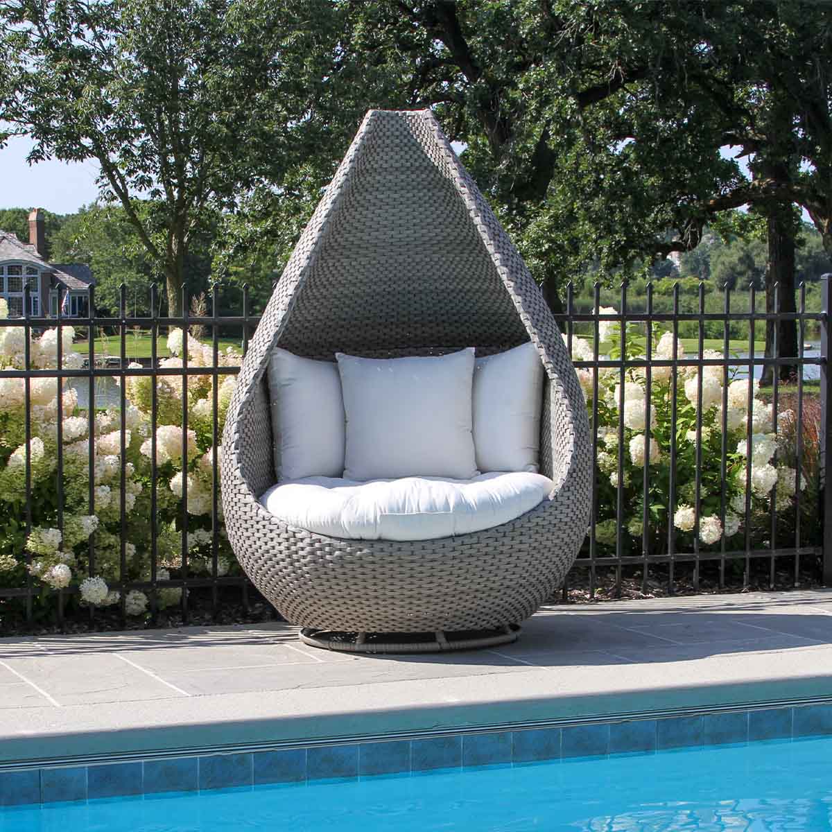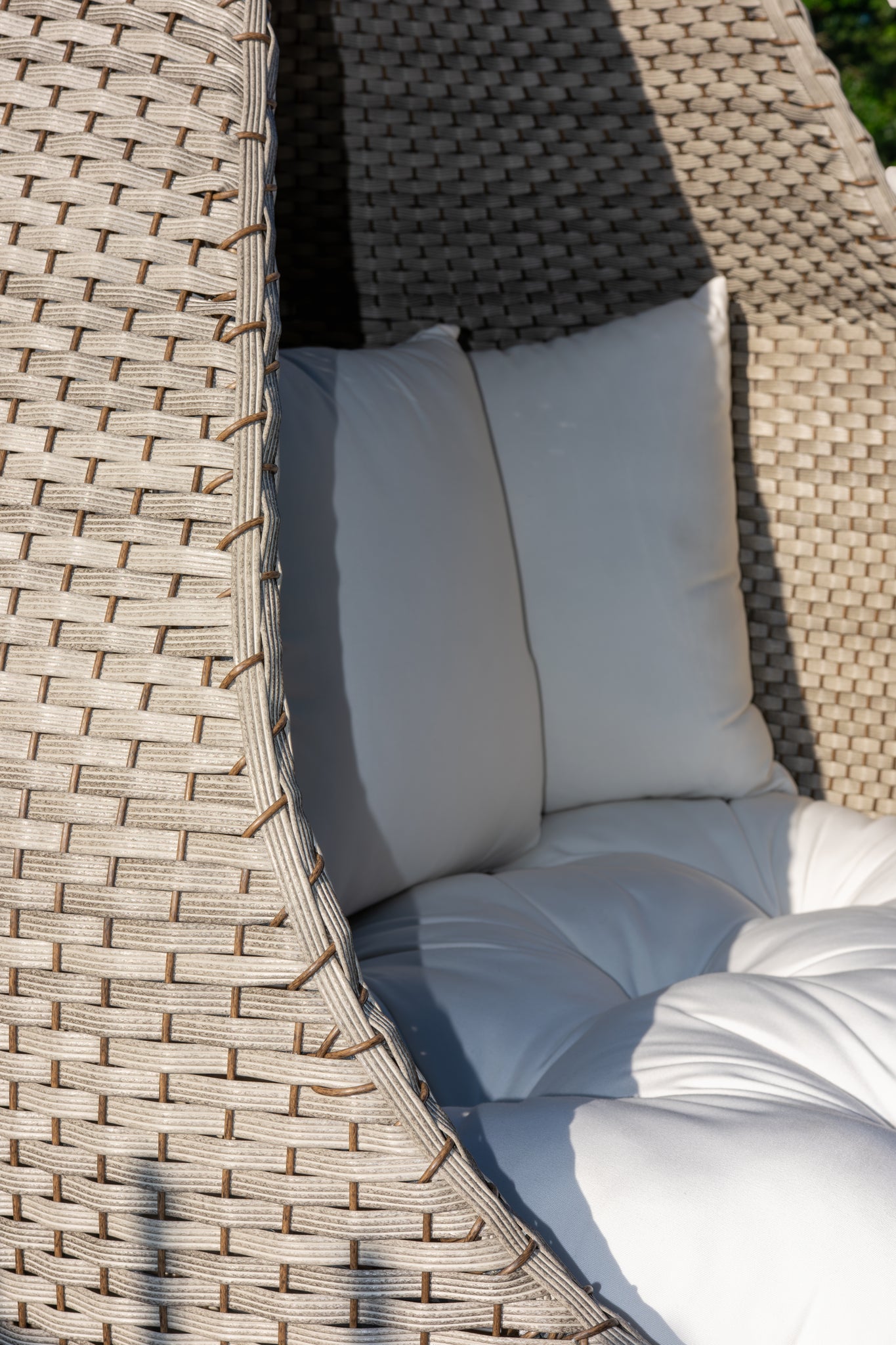 This chair combines sculptural form with deep, luxurious comfort. Handwoven from HDPE all-weather wicker over a powder-coated aluminum frame, it offers smooth 360° swivel motion and plush Sunbrella cushions for all-day lounging. A statement piece for modern outdoor living.