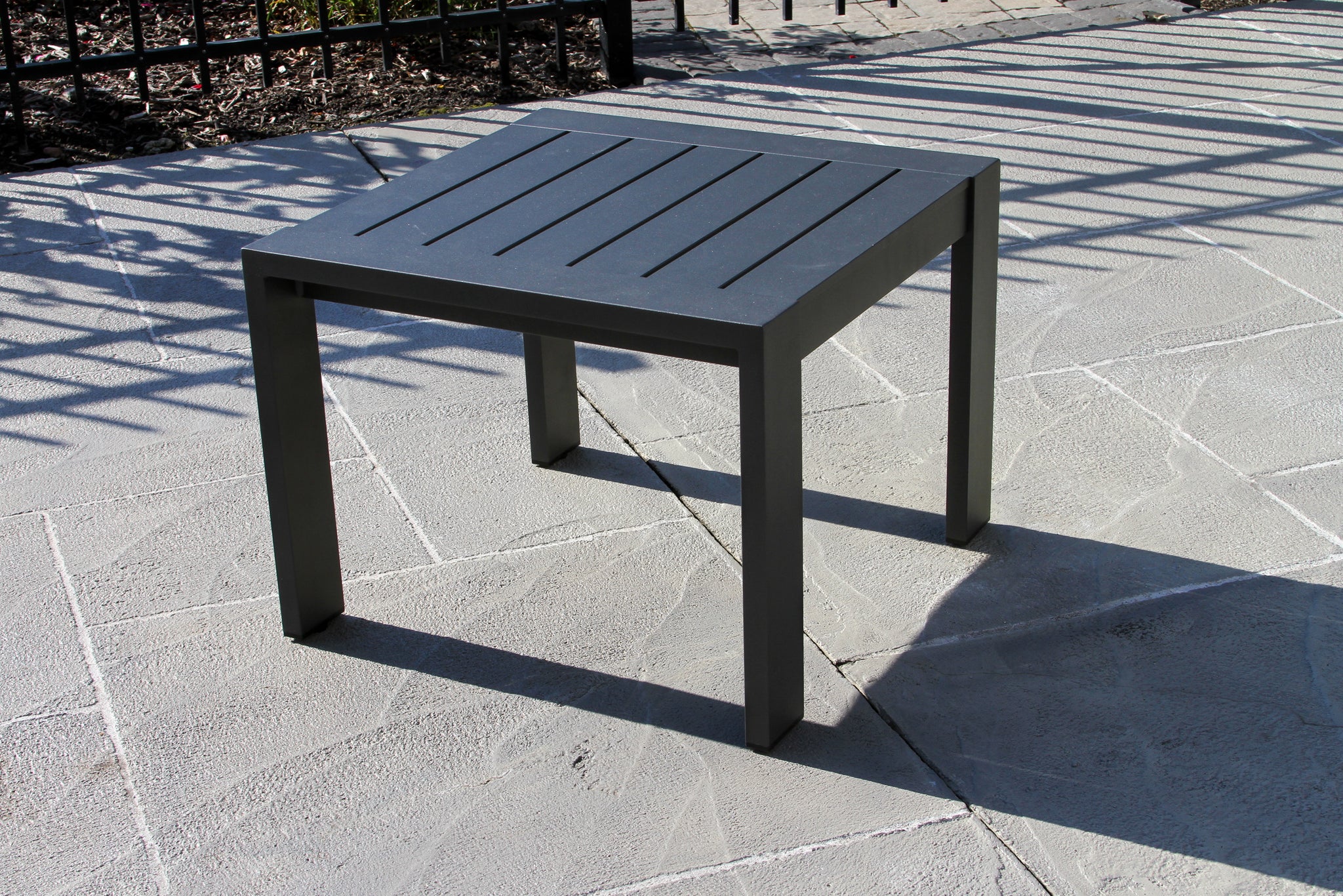 A sleek accent table designed for modern outdoor living. Its powder-coated black aluminum frame offers durability in all seasons, while its compact size makes it perfect beside seating or near loungers. A stylish and functional piece.